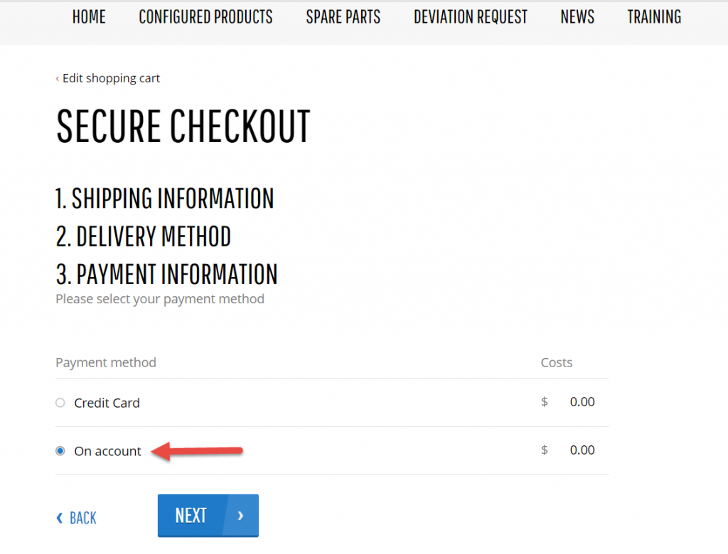 We have updated the checkout process in the Sales Portal. If you have an account with Gilbarco, you can now choose “On Account” as the payment method when checking out.