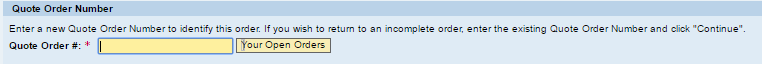 - Open the Quote by entering the Quote Number or selecting it from the list of Your Open Orders.