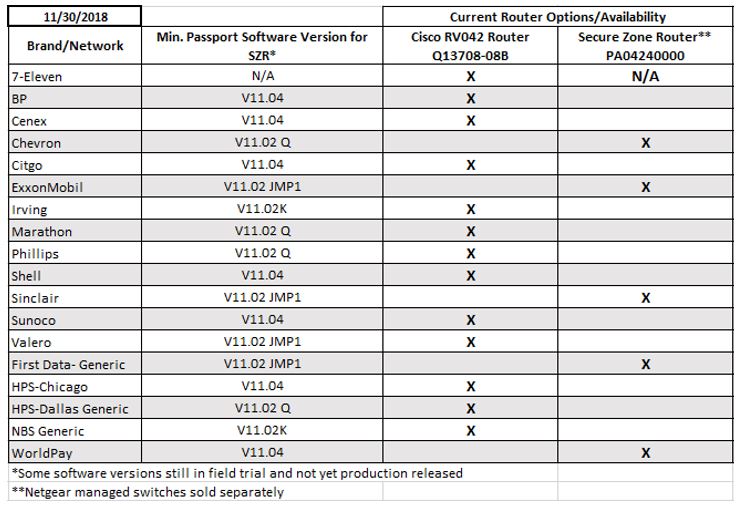 Gilbarco has received full approval to production release the Secure Zone Router for the ExxonMobil, Chevron, First Data Generic (non-Sunoco, non-Valero), and WorldPay networks. The Secure Zone Router is Gilbarco’s networking solution for high-speed connectivity that connects all the Passport and Gilbarco Veeder-Root IP-enabled devices at a site. It enhances the security, standardizes, and simplifies the Gilbarco zone network; and increases support services while lowering total cost of ownership.