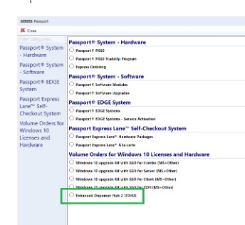 Once in the “Configured Products” area, select the “Enhanced Dispenser Hub 2 (EDH2)” as pictured below. Once there you can select the specific EDH2 versions, enter promo codes, and specify quantity. This will ensure that RAC codes are included with all standalone EDH2 orders.